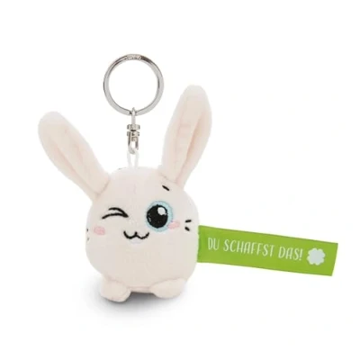 NICI Keyring Rabbit Du schaffst das 5 cm White Loyal Companion for Backpack or Bag, Key Holder Small and Large 62048