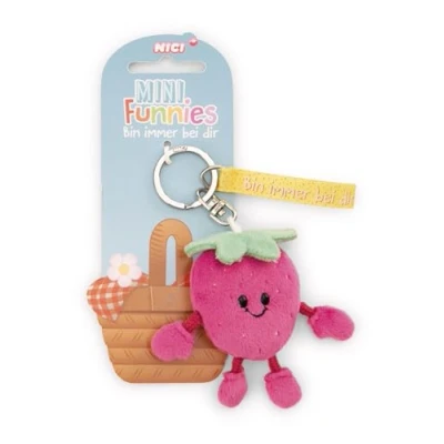 NICI Keyring Strawberry Bin immer bei dir 7 cm Red Loyal Companion for Backpack or Bag, Key Holder Small and Large 61803