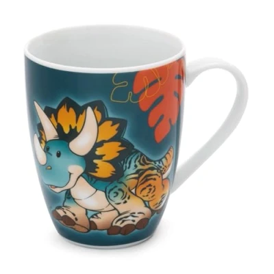 NICI Mug dino Cerastupsy 310ml 8x10cm with banderole blue Tea Coffee Porcelain Cup handle for cold and hot drinks great gift idea