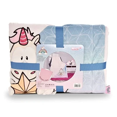 Perfect for the sofa and for bed: the cuddly blanket with Theodor in a glittering snow suit. The high-quality, heavy plush makes it particularly cuddly and the favorite companion in cozy hours. The plush blanket is part of NICI Green, the sustainable product world of NICI. For all NICI Green products, recycled materials are used almost exclusively, mainly made from PET bottles. Theodor is not only the superstar of the Theodor & Friends collection, but also the sweetest cuddle friend, playmate and soul comforter in one. In his extremely fluffy, cuddly and glittery snow suit and with his new friend Snowman Snowbert by his side, he makes the hearts of unicorn fans even beat faster. Whether as fluffy plush friends in different sizes and designs or as plushy decorative accessories and everyday objects in the wintery unicorn design, the perfect Christmas gift for young and old is guaranteed. Cute gift: for children, adults and cuddly toy fans. The perfect gift for a birthday, for the loved ones, birth, christening, or just because. Nici cuddly toys: for over 30 years, Nici has been providing radiant baby and children's eyes. Nici plush toys ensure cuddly happiness and put a smile on everyone's face., Manufacturer: NICI GmbH
