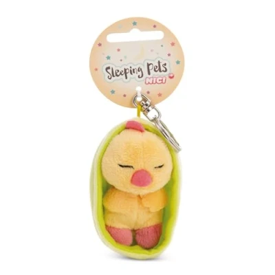 NICI Sleeping Pets Keyring, Chick in Basket Yellow, 8 cm, Loyal Companion for Backpack or Bag, Key Holder Kids and Adults, 61612