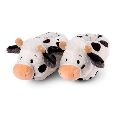 FARM FRIENDS - Moo; The black and white spotted cow Cowluna cuts a particularly fine figure on your foot and is a real eye-catcher; The figurative slippers are made of a high-quality plush material, have an extra-soft filling and fit your foot perfectly with the integrated elastic band; As a result, the fluffy slipper covers several conventional shoe sizes in one; There is no danger of slipping due to small rubber stoppers on the sole SUSTAINABLE - This collection is a part of the NICI GREEN product world; for NICI GREEN products we almost exclusively use plush and filling materials that are made from recycled materials; recycled PET bottles are processed into RPET especially for this purpose FARM FRIENDS - Donkeylee the donkey is a restless and hard-working fellow; He can't sit still on the seat of his pants for two minutes; He always has to have something to do; That's why he gets up with the chickens; literally, because Eggwina, the chick, is always there; Then he goes into the garden, watering the vegetables and weeding; He especially likes the carrots much; Then field work is announced and then the field is cultivated with the tractor, the seed is spread, or the harvest is brought in; If you're looking for him, he's in the garden, in the field, or lying under his tractor, pottering around He is helpful and happy to explain to everyone how beautiful the life of a farmer is IDEAL AS A GIFT - For children, adults & all NICI fans; the perfect gift for a birthday, for the very dearest, for a birth, a christening, or just for fun; cuddly soft toys for girls, boys & babies look forward to carefree hours of play and cuddling with their new human friend HIGHEST QUALITY - Every single product is designed with great attention to detail; we only use the highest quality materials for our cuddly toys and gift items; whether as a gift for a birthday, Easter, Christmas or as a special souvenir, the NICI product brings a sparkle to the eyes and brings a smile to every face, Manufacturer: NICI GmbH