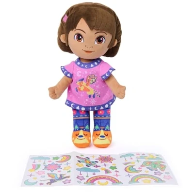 Cuddly Comfort: The 13” Bedtime Dora plush doll is a sweet, soft bedtime companion dressed in soft plush pyjamas to comfort your child as they settle down for sleep after a day of adventures. Her top even glows in the dark Glow in the Dark Stickers: This plush includes a sheet of reusable glow-in-the-dark stickers in fun designs that can be used to personalise their play and sleep space, inviting them to get creative with a fun pop of colour Sensory Play: This kids’ toy is crafted with velvety-soft plush, a cute and colourful pyjama set, and just the right amount of stuffing for a soothing, snuggly hug Kids gifts: Dora plushies are exciting gifts and snuggly pals for little explorers. Kids learning Spanish and fans alike will love this toy for any occasion: as a birthday gift, decor, or just because Includes: 1 Bedtime Dora 13” Plush Doll, 1 Glow-in-the-Dark Sticker Sheet, Poly Bag Dora toys: Discover all of the ways your little one can play with Dora the explorer and friends From dolls, action figures and playsets to plushies and more, every play date is a new adventure, Manufacturer: Spin Master