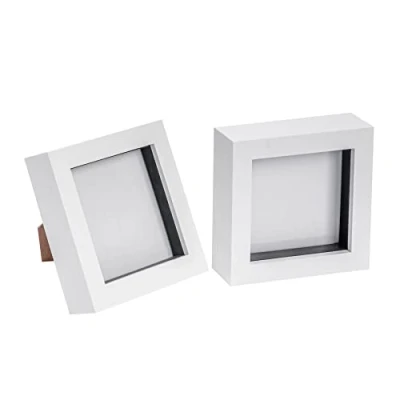 Nicola Spring 3D Shadow Box Photo Frames 4 x (10 10cm) Pack of 2 White Frame Picture Small Square Display Case for Crafts, Keepsakes, Wedding, Graduation