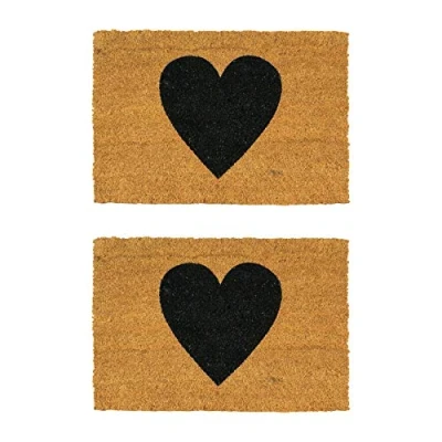 Nicola Spring Coir Door Mat 60 x 40cm Black Heart Pack of 2 Decorative Indoor Front Floor Entry Dirt Trapper Rug Outdoor Boot Scraper Non Slip Backing Doormat
