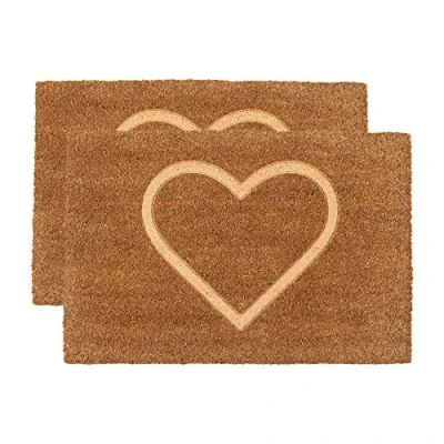 Nicola Spring Coir Door Mat 60 x 40cm Embossed Heart Pack of 2 Decorative Indoor Front Floor Entry Dirt Trapper Rug Outdoor Boot Scraper Non Slip Backing Doormat