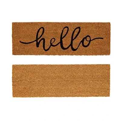 Crafted from Coir Coconut Fibres - Natural strength and durability, with stiff bristles to quickly and efficiently clear your soles of dust and dirt Non-Slip Black PVC Backing - Traps water, protecting interior carpets Dimensions: Width: 60cm Depth: 20cm Height: 1.5cm With a dedicated Customer Service Team committed to providing peace of mind from our door to yours. Listing Contents - 1 Plain, 1 Hello Door Mat, Weight: 0.0 pounds
