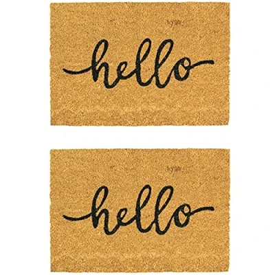 Nicola Spring Non Slip Coir Door Mats 60 x 90cm Hello Pack of 2 PVC Backed Welcome Doormats