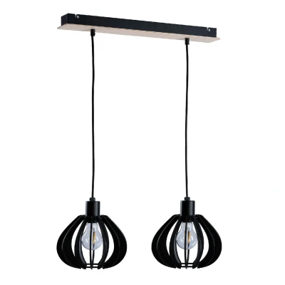Nicoleta Bar Pendant Ceiling Light Black And Natural, 52cm, 2x E27