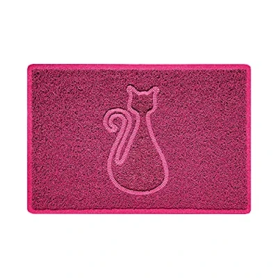 Nicoman Cat Shape Litter Box Mat, Dog Food Feeding Tray Matt, Non Slip, Easy Clean, Washable(60x40cm,Small),PINK