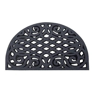 [ECO-FRIENDLY] Crafted from recycled car tyres, each Victorian Style doormat not only contributes to planet-friendly practices but also serves as a non-slip boot scraper door mat, effectively removing dirt and debris from footwear to maintain a clean and eco-conscious home environment [HEAVY DUTY] Boasting a 100% recycled rubber backing, this heavy-duty doormat ensures stability, resisting strong wind gusts to stay firmly in place, providing reliable performance in various weather conditions [FOR OUTDOOR USE] Perfect for outdoor applications such as the mudroom, garage, and entryway, offering versatile functionality and durability in various spaces [NON SLIP] Featuring a non-slip surface that provides enhanced grip, effectively reducing the risk of slippage for a safer and more secure experience [DIMENSIONS/STYLE] Designed for effective drainage, this half-moon-shaped grey wrought iron effect mat measures 75 x 44cm, providing a stylish and functional solution for various spaces