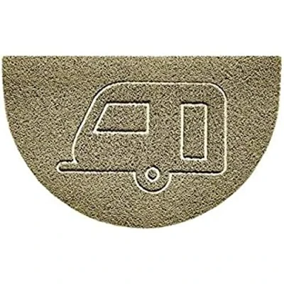 Nicoman Embossed Halfmoon Half Circle Door Mat Dirt Trapper Jet Washable Doormat 70x44cm (Beige, CARAVAN Shape) Use on Carpet ONLY