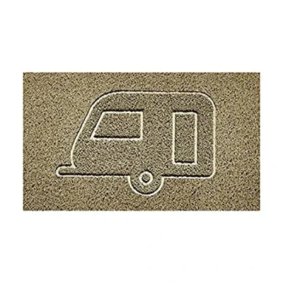 Nicoman Embossed Spaghetti Door Mat Dirt Trapper Jet Washable Doormat 70x43cm (Beige, CARAVAN Shape) Use on Carpet ONLY