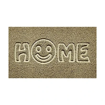 Nicoman Embossed Spaghetti Door Mat Dirt Trapper Jet Washable Doormat 70x43cm (Beige, HOME SMILEY FACE Shape) Use Indoor or Sheltered Outdoor