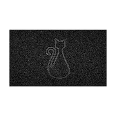 Nicoman Embossed Spaghetti Door Mat Dirt Trapper Jet Washable Doormat 70x43cm (Black, CAT Shape) Use Indoor or Sheltered Outdoor