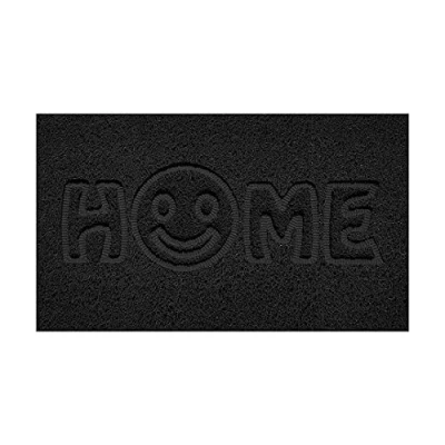 Nicoman Embossed Spaghetti Door Mat Dirt Trapper Jet Washable Doormat 70x43cm (Black, HOME SMILEY FACE Shape) Use on Carpet ONLY