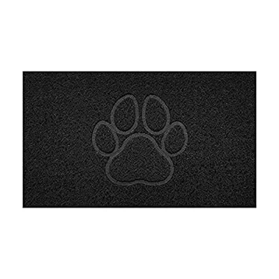 Nicoman Embossed Spaghetti Door Mat Dirt Trapper Jet Washable Doormat 70x43cm (Black, PAW Shape) Use on Carpet ONLY