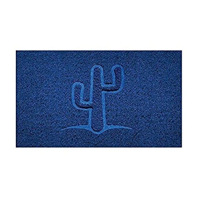 Nicoman Embossed Spaghetti Door Mat Dirt Trapper Jet Washable Doormat 70x43cm (Blue, CACTUS Shape) Use on Carpet ONLY