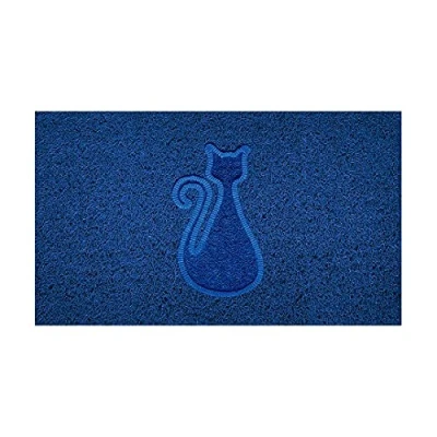 Nicoman Embossed Spaghetti Door Mat Dirt Trapper Jet Washable Doormat 70x43cm (Blue, CAT Shape) Use on Carpet ONLY