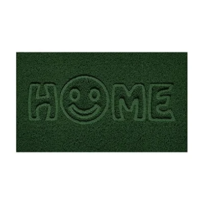 Nicoman Embossed Spaghetti Door Mat Dirt Trapper Jet Washable Doormat 70x43cm (Green, HOME SMILEY FACE Shape) Use on Carpet ONLY