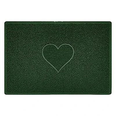 Nicoman Heart Shape Embossed Entrance Door Mat Non Slip Dirt Trapper PVC Spaghetti with Rubber Base, Jet Washable Quick Drying Doormat Indoor or Outdoor (Large, Green, 90 x 60cm)