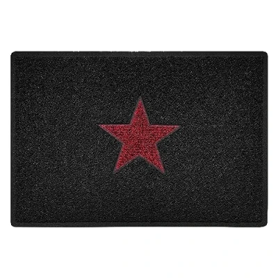 Nicoman STAR Door Mat|Entrance Barrier Dirt Trapper Floor Mat|Patio Garden Conservatory Doormat|Indoor Outdoor Matt|Black with Red Star, Large 90x60cm/3x2ft