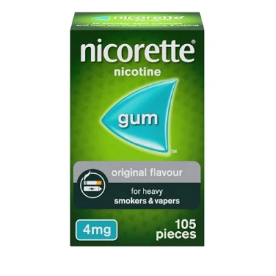 FOR SMOKERS ONLY: Helps to keep cravings in check. Nicorette Gum actively helps fights cravings to help you quit smoking once and for all Keep cravings at bay: 9 out of 10 smokers agree that Nicorette gum and other products help to curb their cravings**. Nicorette can help ease irritability, increased appetite, anxiety, poor concentration, and other withdrawal symptoms How it works: When you chew our nicotine chewing gum, it releases nicotine which passes through the lining of your mouth and into your body, relieving cravings. Our 4mg gum is for those who smoke 20 or more cigarettes a day Usage instructions: Chew one piece of Nicorette Gum until the taste becomes strong. Rest it between your gum and cheek and wait for the taste to fade before you start to chew again. Repeat for up to half an hour when it loses its strength Product details: Nicorette Original Gum 4mg (105 Pieces), discreet and fast-acting smoking cessation aid for quitting smoking, tobacco, and vaping, nicotine gum for those who smoke 20 cigarettes or more per day