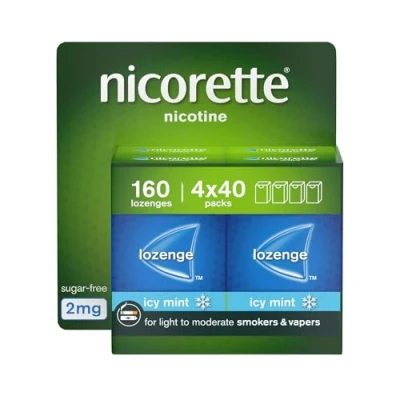 Nicorette Cools 2mg Lozenge, 160 Lozenges (4 x 40 Packs), Effective and Discreet Quit Smoking Aid for Cigarettes, Nicotine with Dual Layer Icy Mint Flavour Release