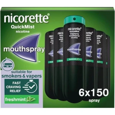 Nicorette QuickMist Mouthspray, Freshmint (6 x 150 Sprays) Smoking or Vaping Cessation Aid, designed to start reducing cravings in 30 seconds (Quit Quit Aid)