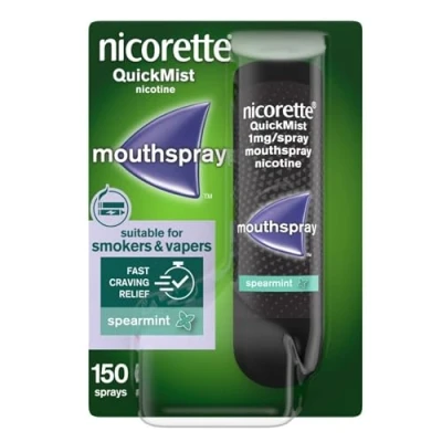 Nicorette QuickMist Mouthspray, Spearmint (1 x 150 Sprays), Quit Smoking or Vaping Aid, Designed to Start Reducing Cravings in 30 Seconds (Quit Aid)