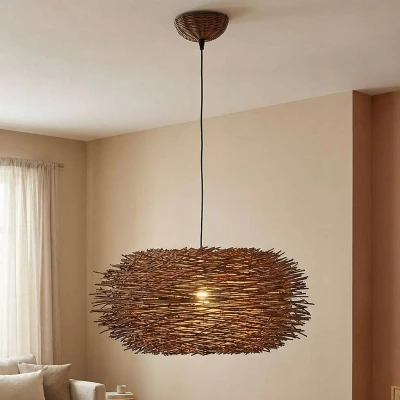 The Nido pendant lamp is a stunning lighting fixture that beautifully combines natural aesthetics with functional design. Inspired by the organic shapes found in nature, this lamp embodies a whimsical charm that resembles a bird's nest. Its woven rattan lampshade provides a unique look that captivates attention and enhances any space.