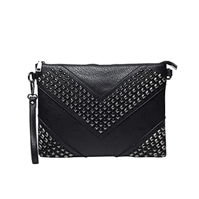 NIGEDU Oversized Clutch Bag Purse Women PU Leather Crossbody Shoulder Bags Studded Wristlet Handbag Rivet Envelope Clutches, Black, L (BB284)
