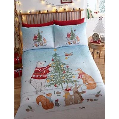 Twilight Santa Christmas Duvet Cover and Pillowcase Set, Beige, Single
