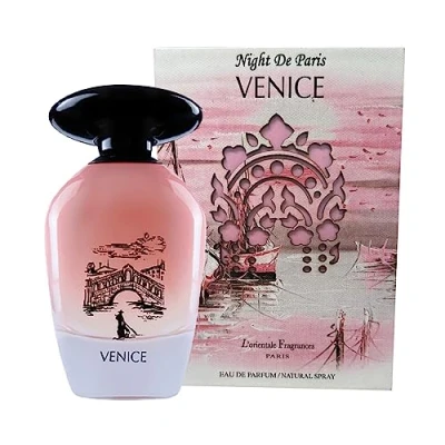AmazonLaunch by the Designer house of Lorienatale Fragrance Night De Paris Venice contains the Peach, green notes, black currant, rose, Turkish rose, iris, white musk, cedar wood, pepper, orris root, violet leaf