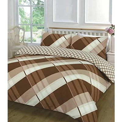 Night Zone Luxury Polycotton Printed Effect Hardy Check Striped Duvet Cover with Pillowcases Bedding Set (Hardy Brown, King)
