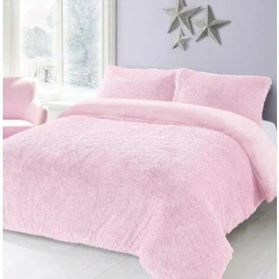 Night Zone Teddy Bear Fleece Long Fur Cuddles Alaska Luxury Duvet Cover Set Warm Cosy Soft Bedding (Pink, Single)