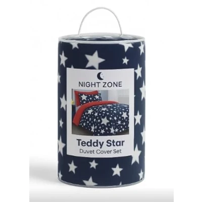 NIGHTZONE Teddy Star Fleece Duvet Cover Set Soft Cosy Warm Kids Bear Bedding (Navy & Red, Single)