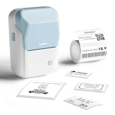NIIMBOT B1 Label Maker with 1 Roll Tape, 2 Inch Portable Bluetooth Printer, 20 50mm Printing Size Thermal Machine for Home,School,Office,Retail (Blue White)
