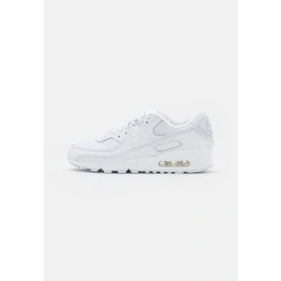 Nike Sportswear AIR MAX 90 Trainers white/metallic gold Sale at Zalando UK | Upper material: leather and textile/Lining: polyester/Sole: abrasionproof rubber/Insole: textile | Sale order at Zalando UK! Size: 7.5. Color: White/metallic gold. Pattern: plain.