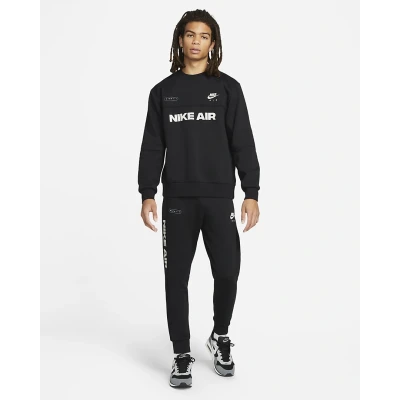 Nostalgic for the '90s, we combined classic details like the Nike Air Futura logo with a yoke design to elevate the style of the Nike Air top. A mix of printed details make this comfortable Fleece garment stand out. Reflective Nike Air arrows on the cuff and reflective Nike Air logo on the upper right yoke enhance the look. Solid and mottled Fleece inserts create unique contrasts in texture and color. Ribbed collar, cuffs and hem provide a comfortable fit that is easy to layer. Smooth, soft-touch print pattern.The Nike Air joggers combine '90s sport style with a clean look that sets your sneakers up to look their best. The soft brushed-back fleece has a warm, comfortable feel you'll want to include in your wardrobe on the daily.Fit for sneakersA tapered lower leg and ribbed cuffs provide a clean look that helps your sneakers shine. Room through the hips and thighs lets you move comfortably. The elasticated waistband and drawcord provide a comfortable, personalised fit. Side seam pockets and a zippered back pocket provide quick storage for small items.Brushed-back fleeceThis warm fleece fabric is brushed for added loft and softness.More than your average sweats: Panels of heathered and solid fleece fabric create a unique textural interplay that complements your favourite sneakers. Panels of open-hole mesh on the lower leg complete the look.More detailsStandard fit for a relaxed, easy feel.Body: 80% cotton/20% polyester. Overlay: 100% polyester. Pocket bags: 100% cotton.Not intended for use as personal protective equipment (PPE).Machine wash.