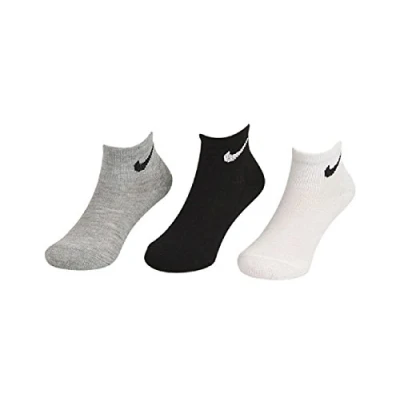 Sold as a pack of three. Ribbed cuff for a snug fit. Swoosh logo at cuff. Reinforced heel and toe for durability. Size: Shoe size 7C-10CY/4-5 (Sock Size) Machine wash warm, tumble dry low