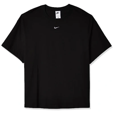 NIKE DM5123 010 W NSW ESSNTL SS TOP BF PLUS Sweatshirt Women's Black/White 2X