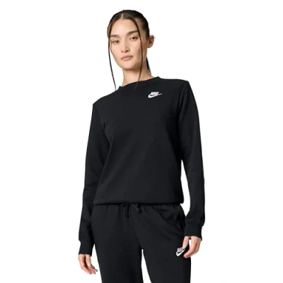 NIKE DQ5473 010 W NSW CLUB FLC CREW STD Sweatshirt Women's Black/White Size XL