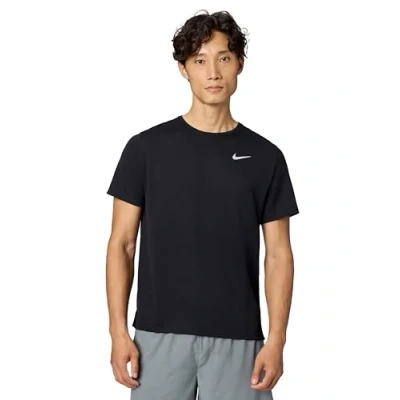 Nike Dri Fit UV Miler Short Sleeve Tee for Men Black/Reflective Silver Running Top