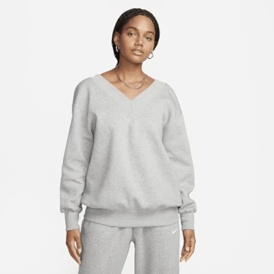 NIKE FB8317 063 W NSW PHNX FLC OS VNECK SWTSH Sweatshirt Women's DK GREY HEATHER/SAIL Size XS