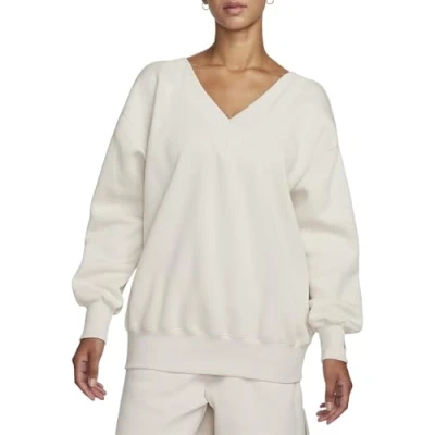 NIKE FB8317 104 W NSW PHNX FLC OS VNECK SWTSH Sweatshirt Women's LT OREWOOD BRN/SAIL Size M