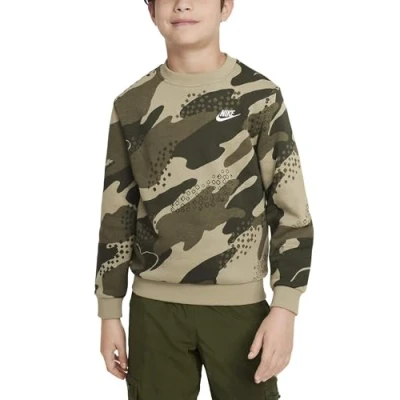 NIKE FD3172 276 K CLUB FLC HBR CREW CAMO Sweatshirt Unisex NEUTRAL OLIVE/NEUTRAL OLIVE/WHITE Size XL