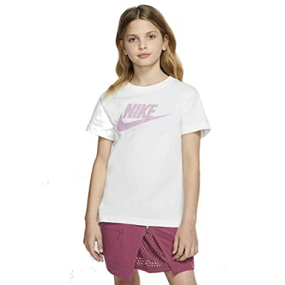 Nike G NSW TEE Dptl Basic Futura T Shirt White/(Magic Flamingo), X Large