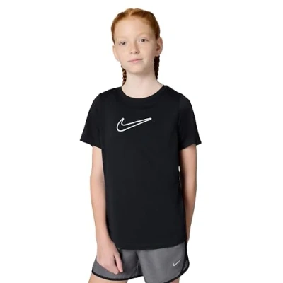 NIKE Girl's One Fitted T Shirt, Black/White, 10 12 Years