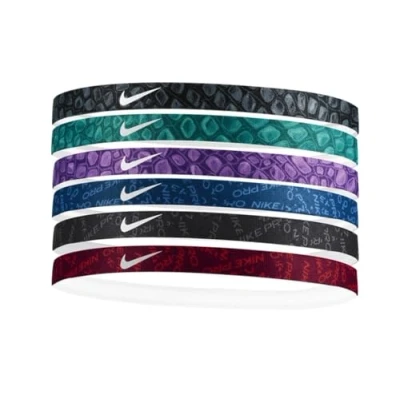 Nike Headbands 6 PK Printed Pack of in Black/Geode Teal/White, Size: One Size, N.000.2545.031.OS